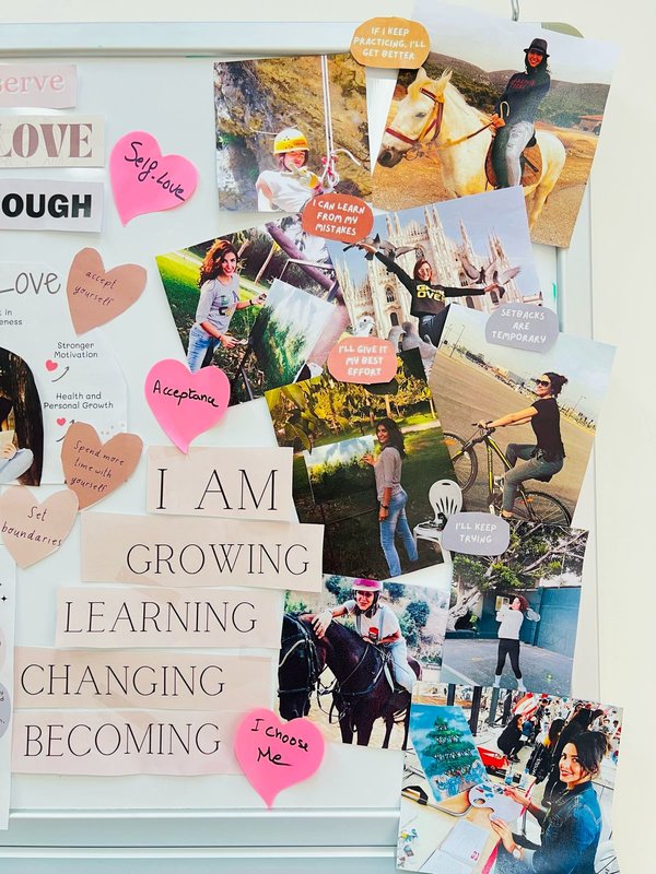 حب الذات يعني قبول الذات واحتضانها بكل نقاط قوتها ونواقصها. يتعلق الأمر كله بإعطاء الأولوية لاحتياجاتي ورغباتي، والاعتراف بقيمتي، والعناية بنفسي، والتعبير عن أفكاري بحرية دون أي خوف من الحكم عليّ. أنا كافية كما أنا، أستحق الحب والاحترام، أتعلم وأنمو، ويمكنني ارتكاب الأخطاء وهذا أمر طبيعي، كما أني بحاجة إلى مساحتي الخاصة. بصفتي فنانة وأستاذة جامعية، أعتقد أن حب الذات يشبه رحلة اكتشاف وقبول، تماماً مثل البدء بعمل فني على القماش، فأنا أكتشف أفكاري وأعكس عواطفي وتجاربي. ما يهمني فعلاً هو أن أضع حدودًا صحية، وأعتني بصحتي العاطفية والعقلية، وأحتفل بكل إنجاز حتى لو كان صغيراً.