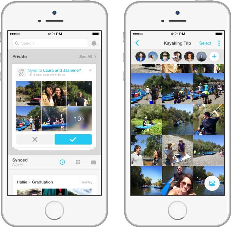 يقوم هذا التطبيق بتصنيف الصور بناء على المكان الذي تم التقاط الصورة فيه، كما أنه يضم تقنية التعرف على الوجوه المتوفرة في شبكة فيسبوك. ويستطيع المستخدم مشاركة الصور مع أصدقاء محددين باستخدام ميزة sync، والبحث عن الصور عن طريق اسم المكان أو شخص محدد.