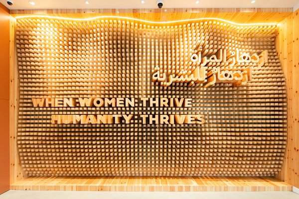 يلقي "جناح المرأة" الضوء على مساهمات نسائية هامّة وأبرز التحدّيات والصعوبات التي تواجه المرأة في مختلف أنحاء العالم، وكل ذلك في إطار مبدأ "تزدهر البشرية، بازدهار المرأة".