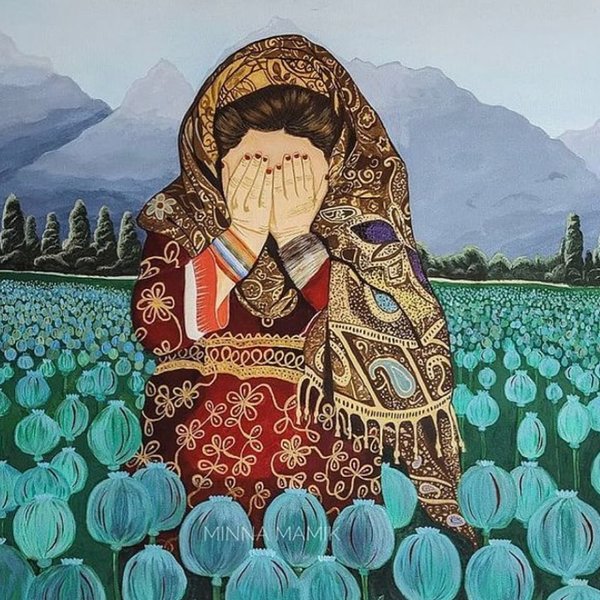 أما minnamamik فقد ارتأت تصوير امرأة تبكي وتضع يديها على وجهها لتخفي قهرها وحزنها وتبدو خلفها طبيعة البلاد الوعرة والقاسية في تصوير جميل عما ينتظر النساء من واقع مشابه.