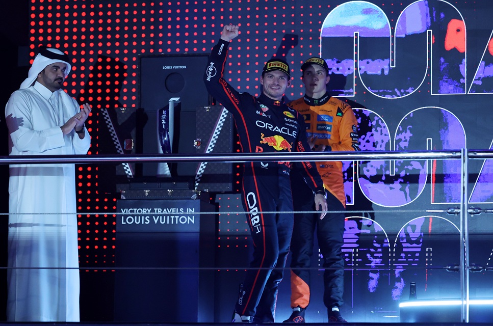 Max Verstappen يفوز بلقب جائزة قطر الكبرى بتوقيع Louis Vuitton على صندوق الجائزة