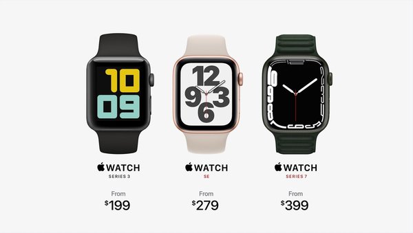 تأتي تشكيلة Apple Watch Series 7 بخمسة ألوان جديدة تماماً لإطار الألومنيوم، ويشمل ذلك سماء الليل وضوء النجوم، والأخضر، والأزرق الجديد و(PRODUCT)RED مع مجموعة ألوان خلابة لأحزمة Apple Watch المتوافقة مع جميع الموديلات. وبالإضافة إلى ذلك، فإن Apple Watch Series 7 تتوافق مع الإصدارات السابقة من أحزمة Apple Watch. ما تزال موديلات الستانلس ستيل وApple Watch Edition وApple Watch SE وApple Watch Series 3 متاحة بالألوان الحالية.
