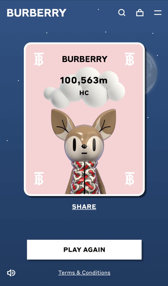 وفي التفاصيل، تحمل اللعبة شخصية رئيسية وهي غزال يرتدي أحد تصاميم سترات Burberry الأيقونية. والطريف، أنه يمكنك اختيار نوع وتصميم السترة التي ترتديها الشخصية. للدخول أكثر في التفاصيل وبمجرد اختيارك تصميم الجاكيت، تبدأ الشخصية بالقفز للأعلى، متقدمة كلّما تمكّنت من اقتناص شعارات بربري الذهبية في طريقها إلى القمر.