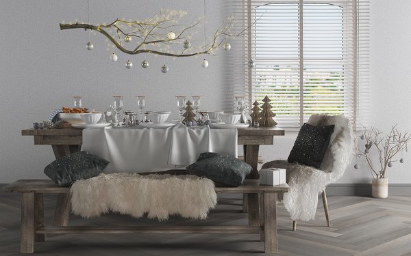 قد ترغبين في ديكور كلاسيكي مستوحى من موسم الاحتفالات، ويكون ذلك من خلال نقشات المربعات والطرطان بدرجات الأحمر والأخضر التقليدية. ويمكن تنسيق هذه النقشات أيضاً مع بعض العناصر الطبيعية كالنباتات والأغصان الخضراء وسواها، فتجمعي بالتالي بين الأناقة والبساطة.