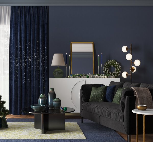 يُعدّ لون الكحلي من الألوان الشتوية التي لا يحدّها زمن. فهو تدرّج كلاسيكي دافئ يضفي على الديكور لمسة ساحرة، بخاصّة لو نسّقته مع زينة وأكسسوارات تطغى عليها القطع المعدنية. كما ويُعدّ أيضاً خياراً مثالياً للانتقال من الألوان الخريفيةة إلى الألوان الداكنة الأنيقة.