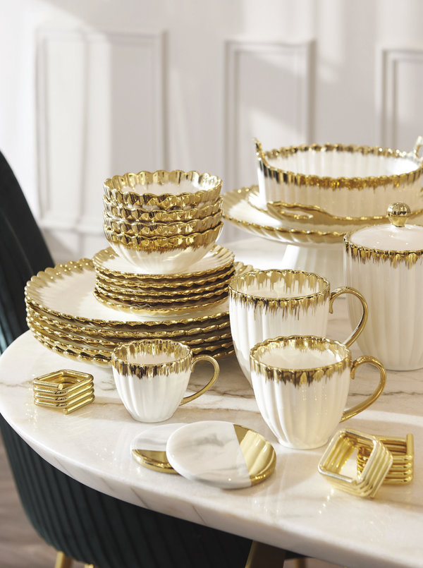 قد يبدو هذا مبتذلاً، إلّا أنّني أرى كلّ قطعة بمثابة تمثيل لهذا التعاون المذهل وكلّ تصميم قريب منّي حقاً لأنّه نتيجة حبّ كبير. ومع ذلك، أعترف بأنّ فرادة مجموعة أدوات تقديم الطعام باللونين الذهبي والأبيض تجذبني على وجه الخصوص. وذلك لأنّني نشأت وأنا أرى أمي وجدّتي تستخدمان أدوات تقديم فريدة وجميلة لجعل أسرتهما وضيوفهما يشعرون بالترحيب والتميّز. وأجد أنّ أواني التقديم تجسّد الجهد المبذول لجعل عائلتك وأصدقائك يشعرون بأنّهم محبوبون.