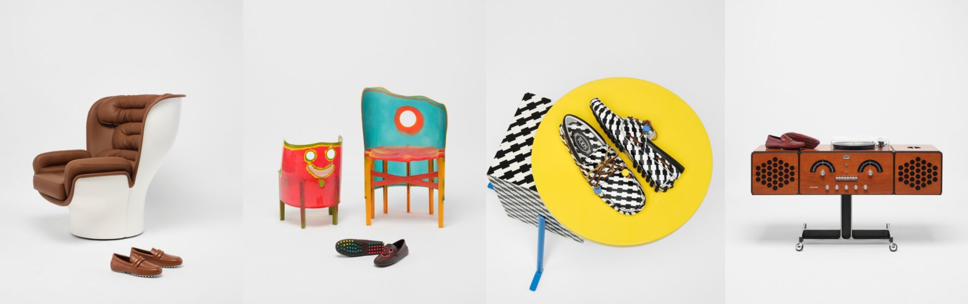 ولمناسبة معرض سالون ديل موبيل 2026، قدمت Tod’s مشروعًا خاصًا مُخصّصًا لأساتذة التصميم الإيطالي البارزين في القرن العشرين، احتفاءً بالإبداع والحرفية الإيطالية المتميزة. يُمثّل كرسي غومينو، أيقونة العلامة التجارية، جوهر هذه المبادرة، مُعادًا تفسيره من خلال الرموز الجمالية لأعمال أربعة من الرواد الذين ساهموا في جعل التصميم الإيطالي مرجعًا عالميًا: الخطوط المُحيطة والمستقبلية لكرسي إلدا من تصميم جو كولومبو، والحرية التعبيرية والمادية لكرسي كروسبي من تصميم غايتانو بيسكي، واللغة التصميمية الجريئة لطاولة كريستال من تصميم ميشيل دي لوتشي لشركة ممفيس ميلانو والتي تتميز بنقشة فانتاستيك الشهيرة، والتصميم النقي لجهاز بريونفيغا RR226 راديوفونوغراف من تصميم أكيلي وبيير جياكومو كاستيليوني.