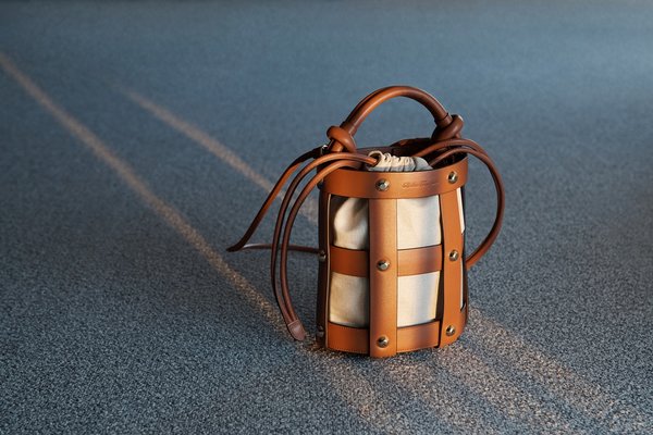 تتميز هذه الحقيبة بشكل دلو دائري وهي مستوحاة من صندل Kimo الشهير الذي ابتكره Salvatore Ferragamo عام 1951 – حيث تم صنع الجزء العلوي من الجلد المنسوج مع حقيبة داخلية قابلة للتبديل من الجلد أو الحرير.