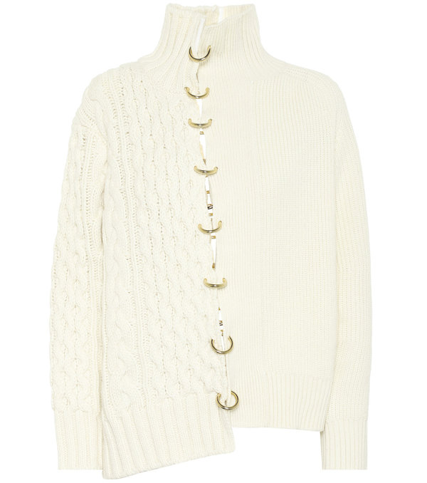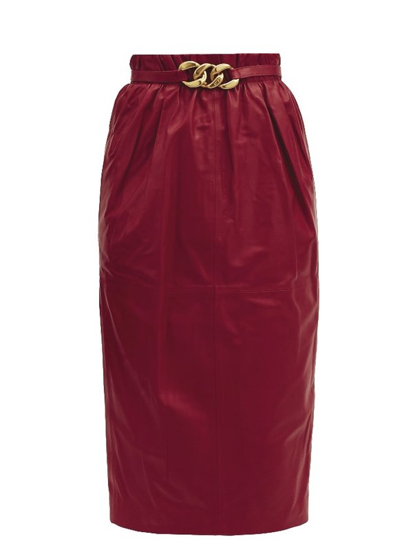 أو يمكنك أن تنسقي تنورة باللون الأحمر من No.21، مع توب ياقة عالية باللون الأبيض من Scai