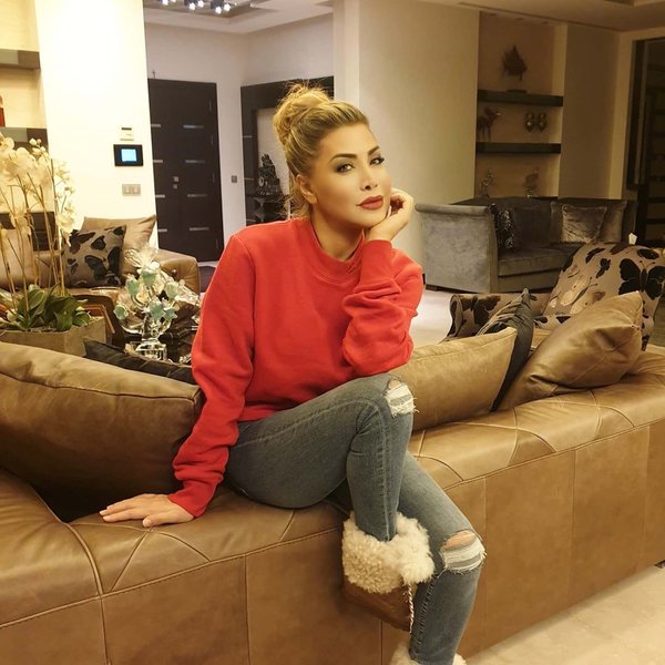 نوال الزغبي اختارت إطلالة مناسبة للعمل، فنسّقت سروالاً من الجينز مع كنزة من الصوف الناعم ذات ياقة عالية وهي موضة رائجة جداً مع حذاء من الفرو.