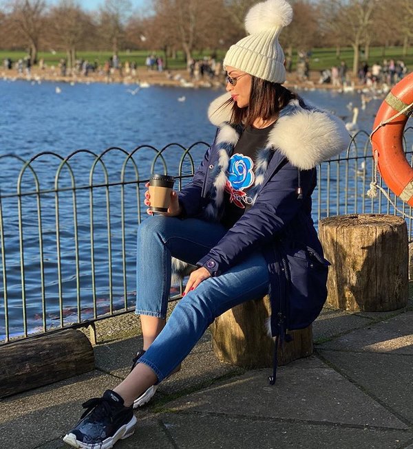كذلك، أطلّت درة زروق بإطلالة شتوية، فاعتمدت سروالاً من الجلد مع معطف طويل وحذاء رياضي في إطلالة كاجوال.