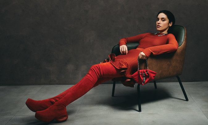 تنّورة من Elisabetta Franchi، وحقيبة من Marella، وحذاء من Andrea Wazen