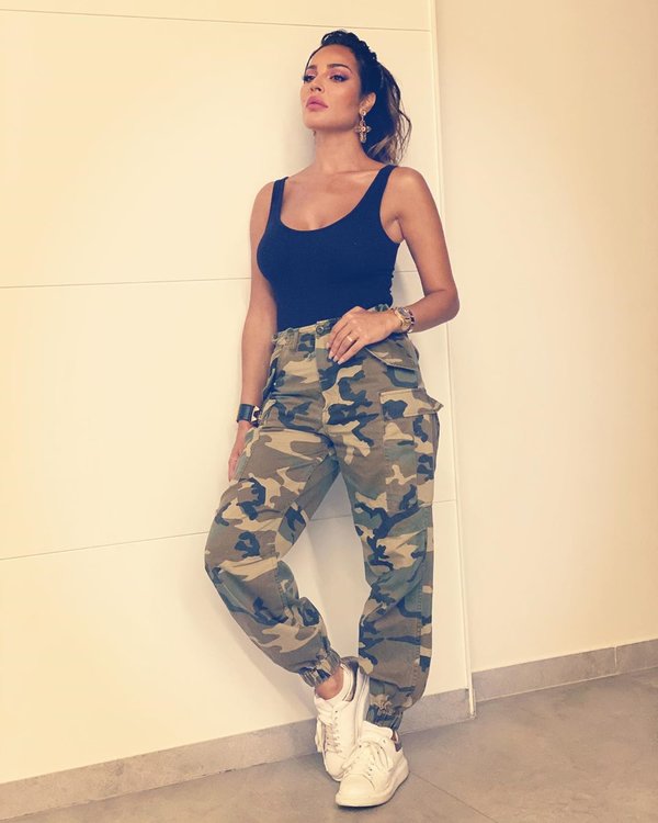 اختارت إطلالة شبابية وصيفية بامتياز، فاختارته مع شورت.