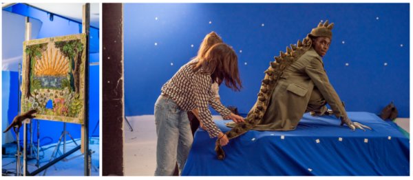وقد عمل فريق كبير من حوالى 60 شخصاً على الإعلان، وقد صنعت الخلفيات بما في ذلك الغابة والوادي والأزهار من القماش المقطّع والمحاك يدوياً بعناية فائقة.