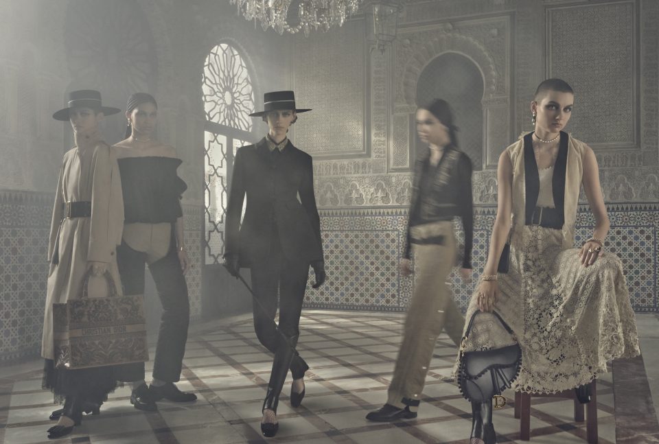 عارضات في قصور إشبيلية، بين الضوء والظل، بين العراقة وحرفية دار ديور في إبتكار تصاميم لا تشبه أي علامة تجارية أخرى حيث جسّدت من خلالها أجواء هذه المنطقة.