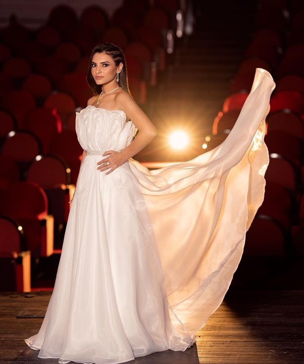 خلال مشاركتها في مهرجان الموسيقى العربية، وقع خيار الفنانة المصرية كارمن سليمان على فستان أبيض من تصميم SHAHIRA LASHEEN. والذي تميز بالبساطة والشياكة.