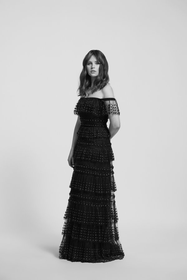 الممثلة Felicity Jones أطلت بفستان أسود متعدد الطبقات من Valentino.