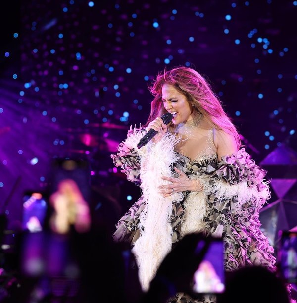 خلال الحفل قدمت جينيفر لوبيز عرضاً مميزاً حبست فيه أنفاس المشاركين تماماً كما سحرتنا بلوكها. في التفاصيل، اختارت لوبيز إطلالة جذابة للغاية من Roberto Cavalli، فاعتمدت جمبسوت ذات قصة الأرجل الواسعة وخصر عالي مرصع بالكريستال البراق مع كاب طويل.
