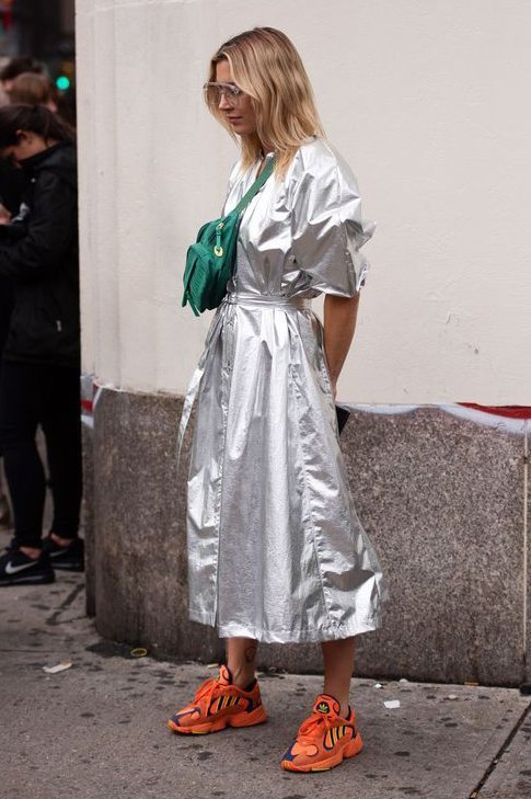 حسناً قد يكون من الغريب تنسيق اللون الرصاصي الفاتح جداً مع الأخضر لكن لا مانع من إضافة اكسسوارات من هذا اللون كالحقيبة الخضراء أو أي اكسسوار آخر من هذا اللون.