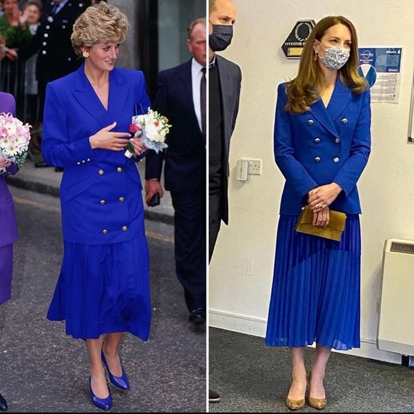 هذه الإطلالة أعادتنا بالذاكرة إلى العام 1992، وتحديداً إطلالة الأميرة ديانا التي اعتمدت الستايل نفسه من الملابس. وهنا يكمن السؤال، من الأجمل؟