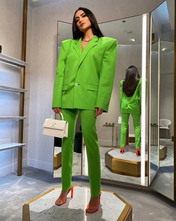 ليس بغريب عنا أن تختار مقدمة البرامج أجدد صيحات الموضة في إطلالاتها، حيث لفتنا الجاكيت الـOversized التي تميزت بلونها الحيوي وطريقة تنسيقها مع legging.
