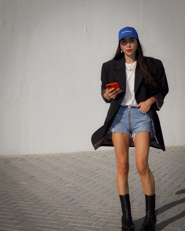 نسقت هذه الصيحة الرائجة مع شورت وذحاء بوتس في أسلوب كاجوال.