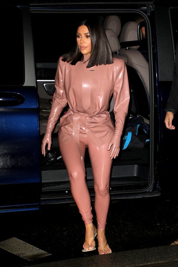 كيم كارداشيان اختارت جمبسوت باللون الوردي في إطلالة جريئة للغاية