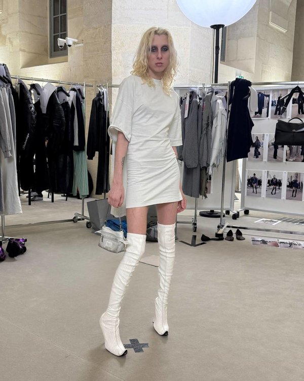 هذا وتشمل الإطلالات سترات العمل، سراويل الكارغو الممزقة المدمجة مع بسراويل رياضية، وسترات جلدية إلى جانب فستان ميني ضيق مصنوع من قميص أبيض بسيط.