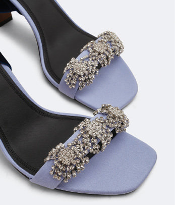 بالنسبة إلى مجموعة SUMMER NIGHTS، قمت بتجربة تشكيلة من المواد المفضلة لدي. واستعنّا بابتكارات مبدعة من الكعوب الـ plexi والكريستال المخرّم لـ BOPHY بالإضافة إلى زخرفة الساتان ذات الثنيات لـ NEPTUNE وزخرفة الجواهر لـ TULIP وVENUS.