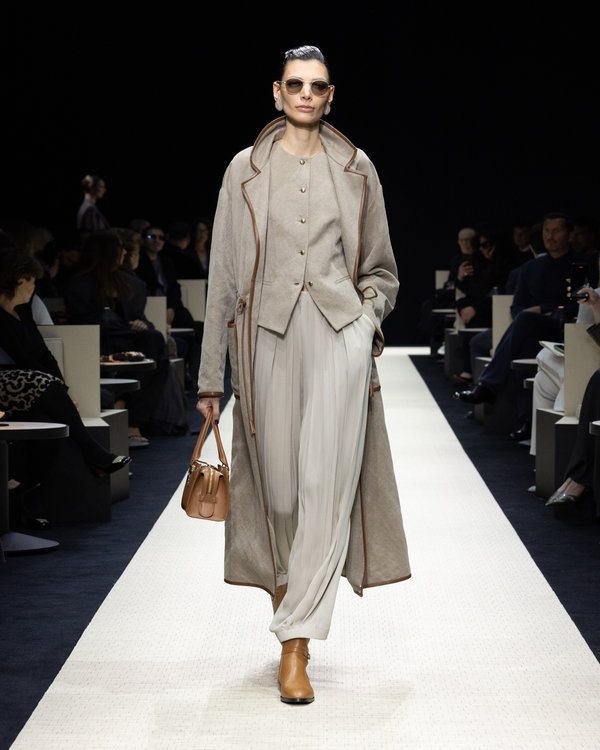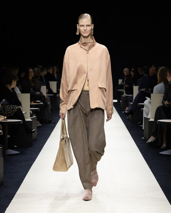 بالنسبة لجورجيو أرماني، فإن كل مجموعة تمثل عودة إلى جذوره، وتأكيدًا على أسلوبٍ أصيل يتطور، ويستمد قوته من ذاته، حيث تتخذ المجموعة الألوان البركانية والتوهجات المعدنية ركيزةً لها أكان من الظلال الرملية والذهبية، البني الغامق الذي يتلاشى إلى اللون الأخضر، وانعكاسات زرقاء كوارتزية.