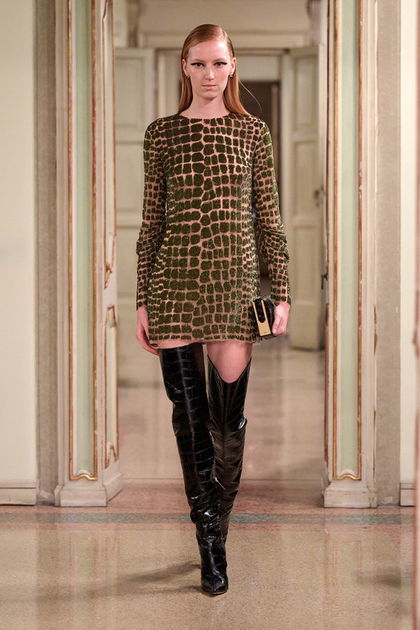 استوحت Ferragamo مجموعتها من عشرينيات وثمانينيات القرن الماضي، مع معاطف الساتان المربوطة بإحكام على الجسم و الصنادل التي تلتف حول الساقين.