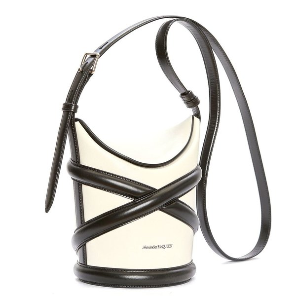 تتوفر حقيبة The Curve من Alexander McQueen بمجموعة متنوعة من الألوان الناعمة والحيوية، مثل البني، الزهر، الأصفر، الأسود وقماش الدنيم.