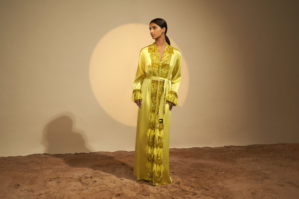 صُممت جميع قطع المجموعة باستخدام خامة الساتان مع تزيينه في بعض القطع بتطريزات ذات تفاصيل متناغمة من الترتر لتلائم جميع المناسبات.