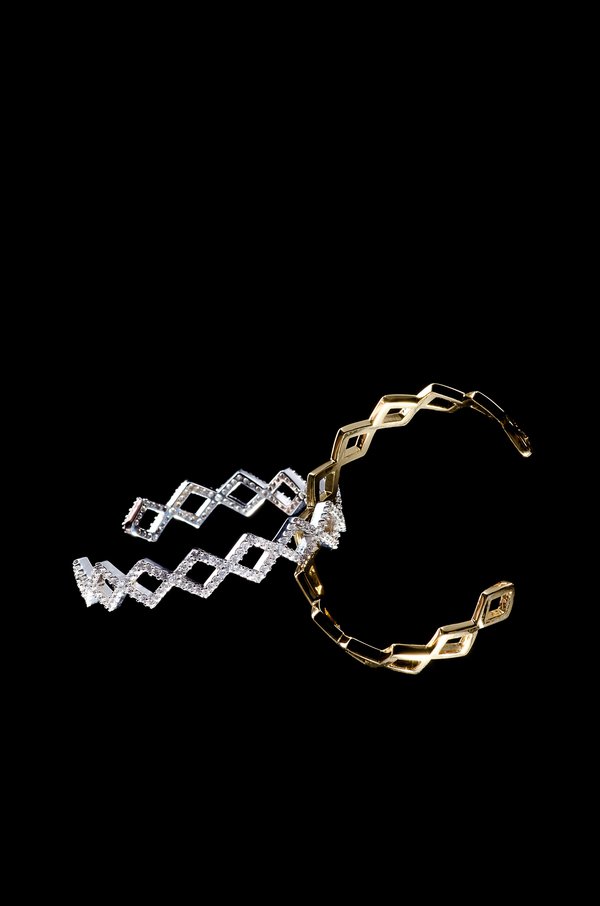 تتألق مجموعة مجوهرات Bonds of Gold بشعار العلامة على شكل حجري ألماس يعكس فخامة الدار وهويتها المميزة. وتبرز ضمن قطع التشكيلة الفاخرة أقراط Bond المصممة من الفضة والذهب والكريستال والمرصعة بأحجار الكريستال اللامعة، والتي تتوفر بمقاساتٍ تتدرج في الحجم لتسلط الضوء على أساليب التصميم المميزة للعلامة.