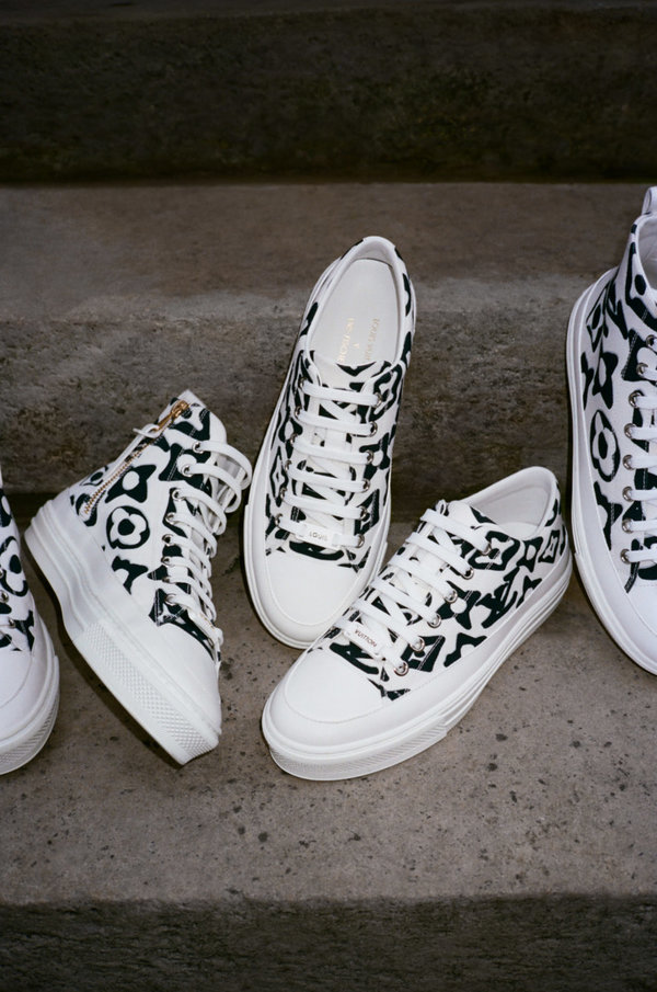 يتوفر المونوغرام الجديد لعلامة Louis Vuitton بلونين، الأسود والأحمر، الأسود والأبيض. ويتميز في جميع تصاميم المجموعة: على طرازين رياضيين من أحذية رياضية منخفضة وعالية، شالات الصوف، وشاح مبطّن…أما عند عند طباعته على ملابس رياضية جاهزة، يتغيّر حجم المونوغرام وفقاً لمنحنيات الجسم.