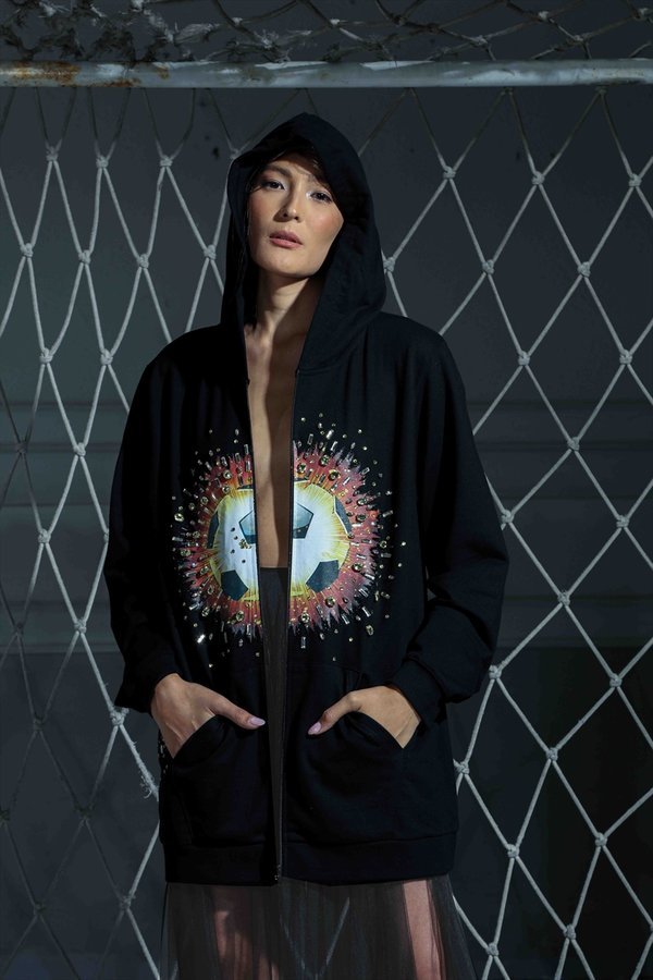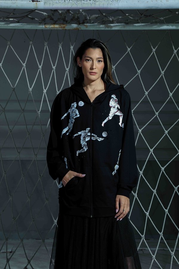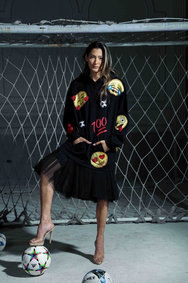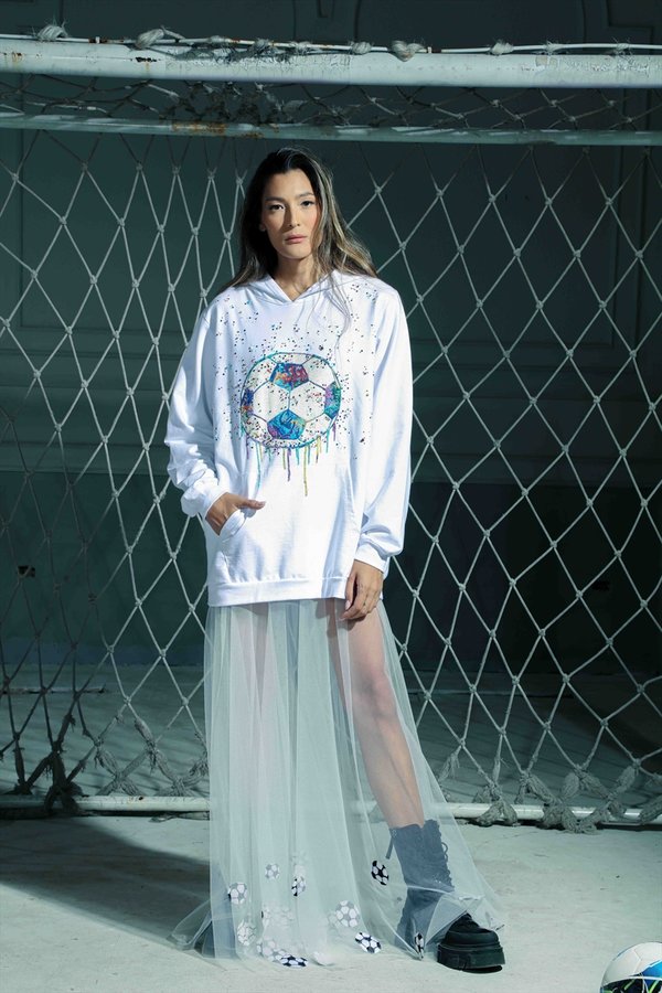 ضمّت المجموعة قمصان للرجال والنساء بأكمام طويلة وقبّعات وتدرجت بين الألوان الأساسية وهي الأبيض والأسود كما زُيّنت بكرة القدم الملوّنة مع قماش التول الذي إنسدل من بعض القطع.