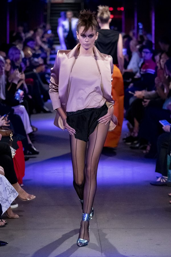 وإلى جانب جيجي، لفتتنا عارضة الأزياء كايا غاربر التي نسّقت توباً وجاكيت باللون الوردي مع سروال قصير وجوارب شفافة.