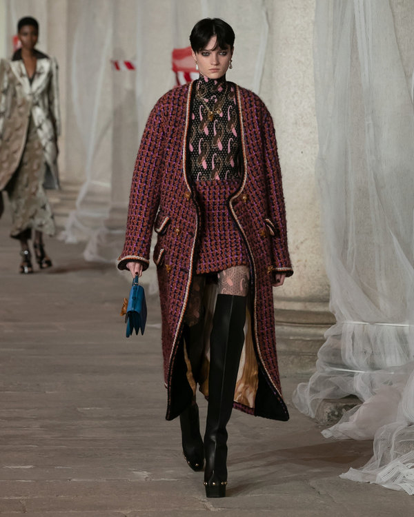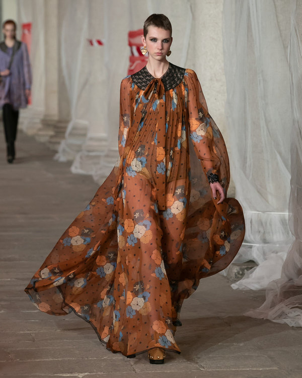 لا شكّ في أنّ "الدفء" هو عنوان مجموعة دار إترو Etro لموسم خريف وشتاء 2023 – 2024، إذ أنّ التّصاميم وحدها توحي بالدفء، وخامات الصوف المحبوك والمخمل الثمين خير دليل على ذلك. أمّا الألوان فارتكزت على الألوان الحياديّة في الأساس مع لمسات ملوّنة في الطّبعات ونقشات الأزهار والرسومات المتنوّعة واكسسوارات الكارديغان والوشاح الصوفيّ المحبوك.
