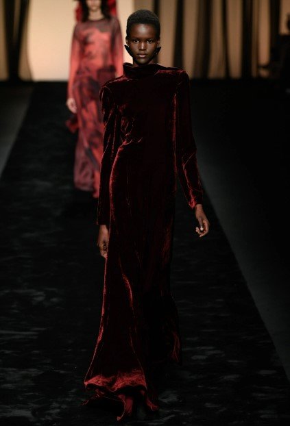 اتّسمت مجموعة المصمّمة الإيطاليّة Alberta Ferretti بطابع الكلاسيكيّة والأناقة غير المتكلّفة، والتي برزت في تصاميم البدلات والسراويل والمعاطف والفساتين والتنانير العمليّة والبلوزات الشفّافة، فيما ارتكزت الخامات على الفرو الاصطناعيّ والمخمل والجلد. أمّا لوحة الألوان فطغى عليها الأسود والرماديّ والبنّيّ المائل إلى البيج، مع لمسات من البرغانديّ والأحمر.