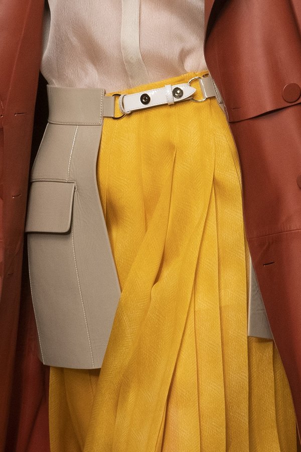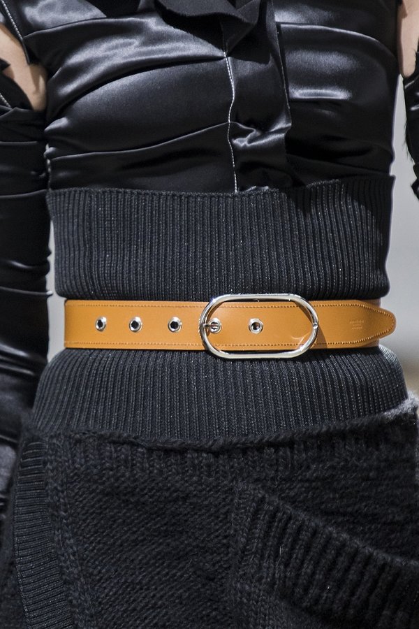 نتكلّم هنا عن الحزام الذي يشبه بقصّته حزام الكورسيه نظراً لعرضه إلا أنه يأتي على الأرداف وليس على الخصر وكأنه تنورة وكنا قد رأيناه مع Fendi.