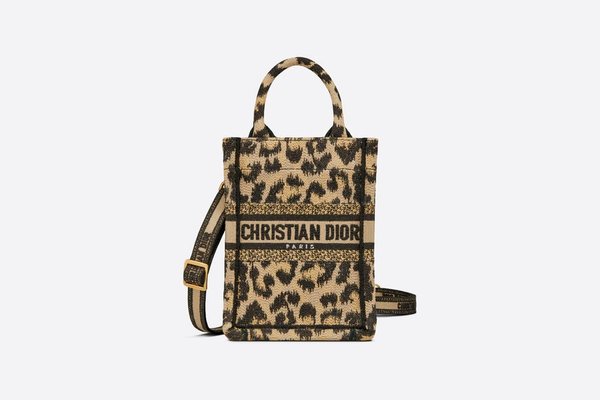 شنط ديور ميني بحجم صغيرة مرقطة بألوان النمر يمكن حملها خلال السفر وتتستع للأغراض الشخصية الصغيرة.