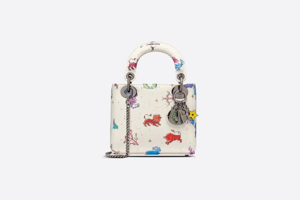 شنط ديور ميني مزينة برسوم الأبراج المختلفة مع اللون الأبيض وبتصميم صغير عملي وأنيق.