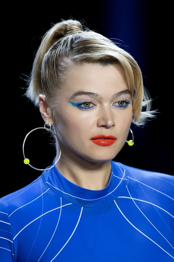 تسريحة ذيل الحصان المرتفع مع غرة منسدلة على الوجه