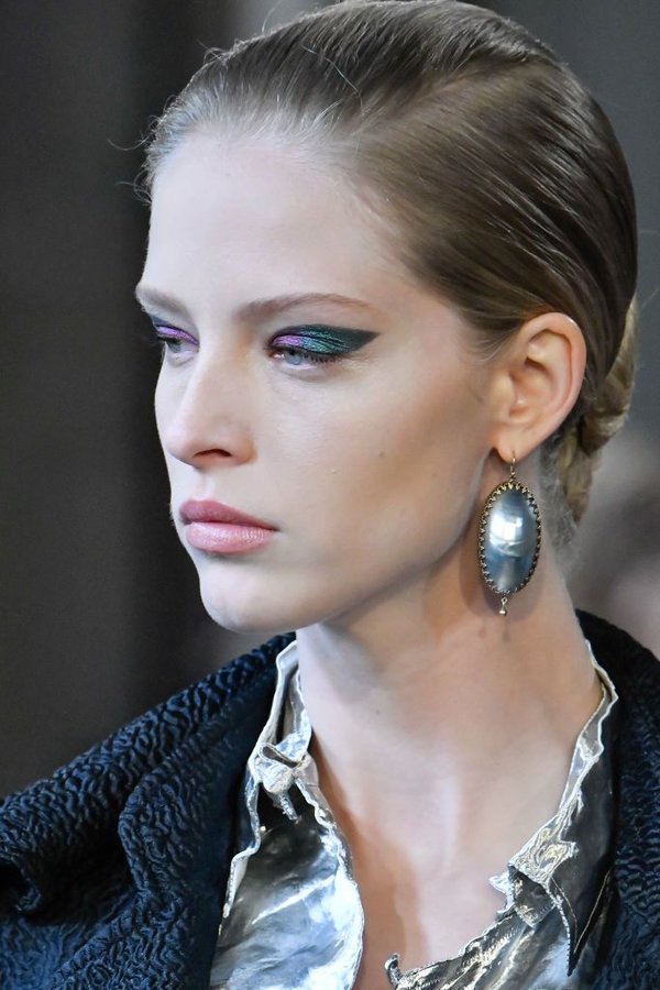 جميلة هي الصيحة التي أطلقتها دار Altuzarra، وهي صيحة ظلال العيون بلونين جميلين أشبه بألوان الأحجار الكريمة كالأزرق والأخضر على سبيل المثال.