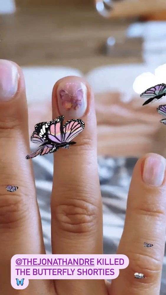 ديمي ليفاتو هي إحدى النجمات اللواتي ينوّعن بين التألّق بأظافر قصيرة تارةً وأظافر طويلة طوراً آخر. ومن أكثر الأمور التي تلفتنا في إطلالاتها من هذه الناحية، الأنماط المتعدّدة التي تعتمدها بدءاً من الأشكال الغرافية وصولاً إلى التطويل الشفّاف. أمّا هذه المرّة، فتظهر ليفاتو بأظافر قصيرة وقد اعتمدت عليها رسومات الفراشات، لتؤكّد أنّ الابتكار على لا يتقصر على الأظافر الطويلة فقط.