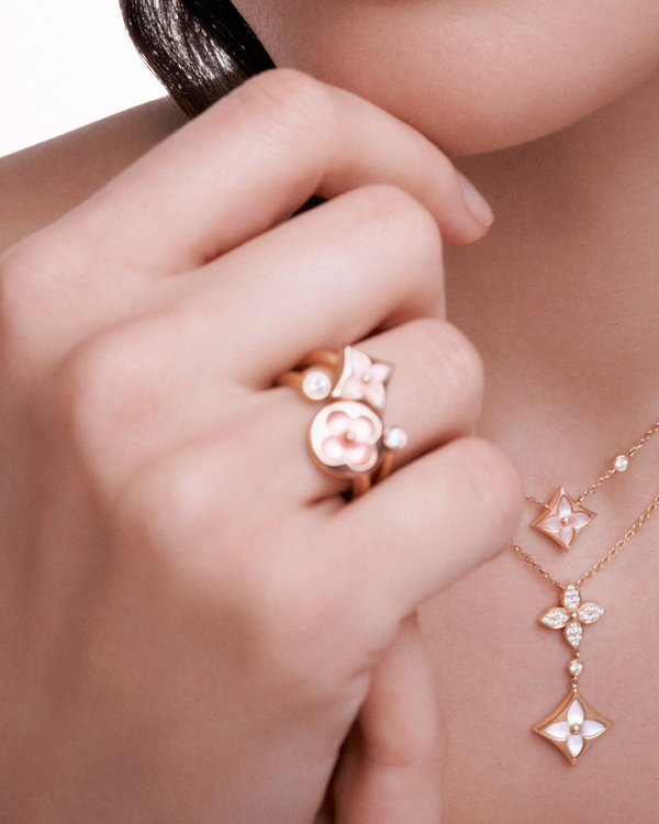 تستمر مجموعة "Color Blossom" من Louis Vuitton بجذب محبات المجوهرات بتقديم إصدارات جديدة، حيث يزدهر شعار الزهور المونوغرام بكل تجسيداته في كل تصميم. منذ إطلاقها في عام 2015، أصبحت هذه المجموعة جزءًا من تاريخ الدار، حيث تجمع بين الإبداع والتاريخ من خلال إعادة تصور زهرة المونوغرام التي صممها جورج لويس فويتون عام 1896.