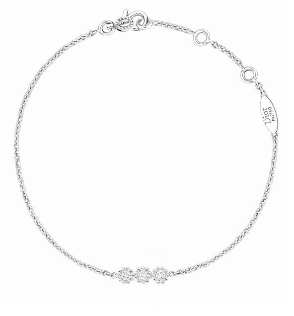 كشفت Dior عن مجموعة جديدة من المجوهرات المرصعة بالماس تتألف من خاتم، سوار، عقد وأقراطاً للأذن في إصدار جديد من الذهب الأبيض.