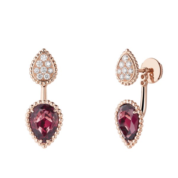 هذه الأقراط تعبّر عن حريّة بلا حدود، مصنوعة من الذهب الأصفر أو الأبيض أو الوردي، ومرصّعة بالماس، اللؤلؤ، أو اللازورد.
