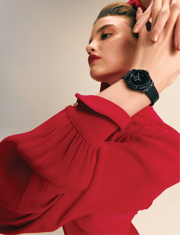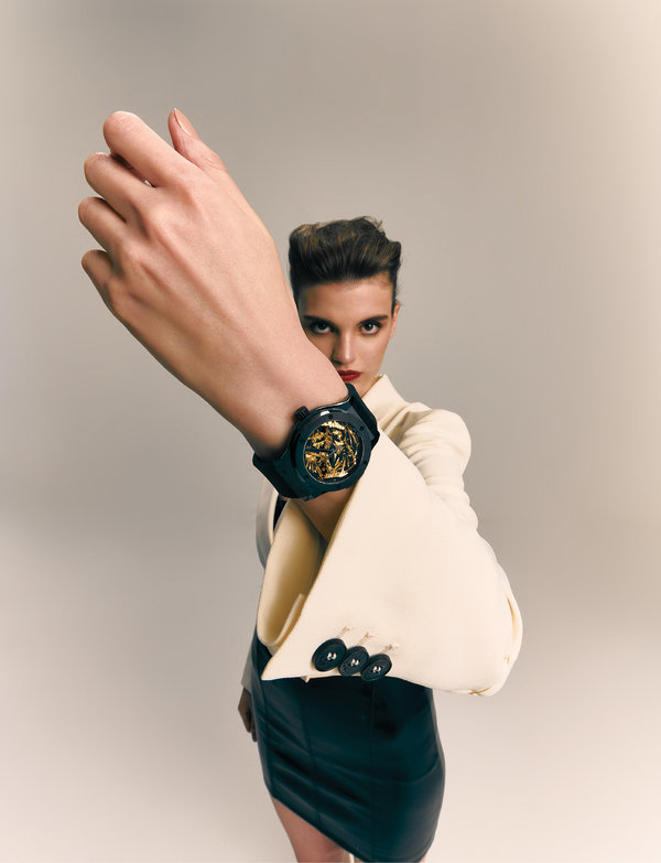 تصوير: Fouad Tadros، تنسيق: Sarah Ruxton من MMG Artists، العارضة: Natasha من League Fashion، شعر ومكياج: Ivan Kuz، إنتاج: Melisa Laory، الساعات كلّها من Hublot