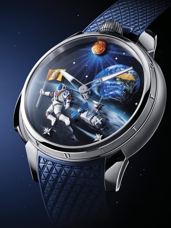 ولأن الطموح لا تحده الأرض، تسافر لويس فويتون إلى المجرات مع Tambour Taiko Galactique. ساعة تجمع بين دقّة ميكانيكية مذهلة ورنين أجراس كاتدرائية، تحتفي بمشهد لرائد فضاء يعانق القمر وسط شمس وأرض متلألئتين، في تحليق فني يخطف الأنفاس.